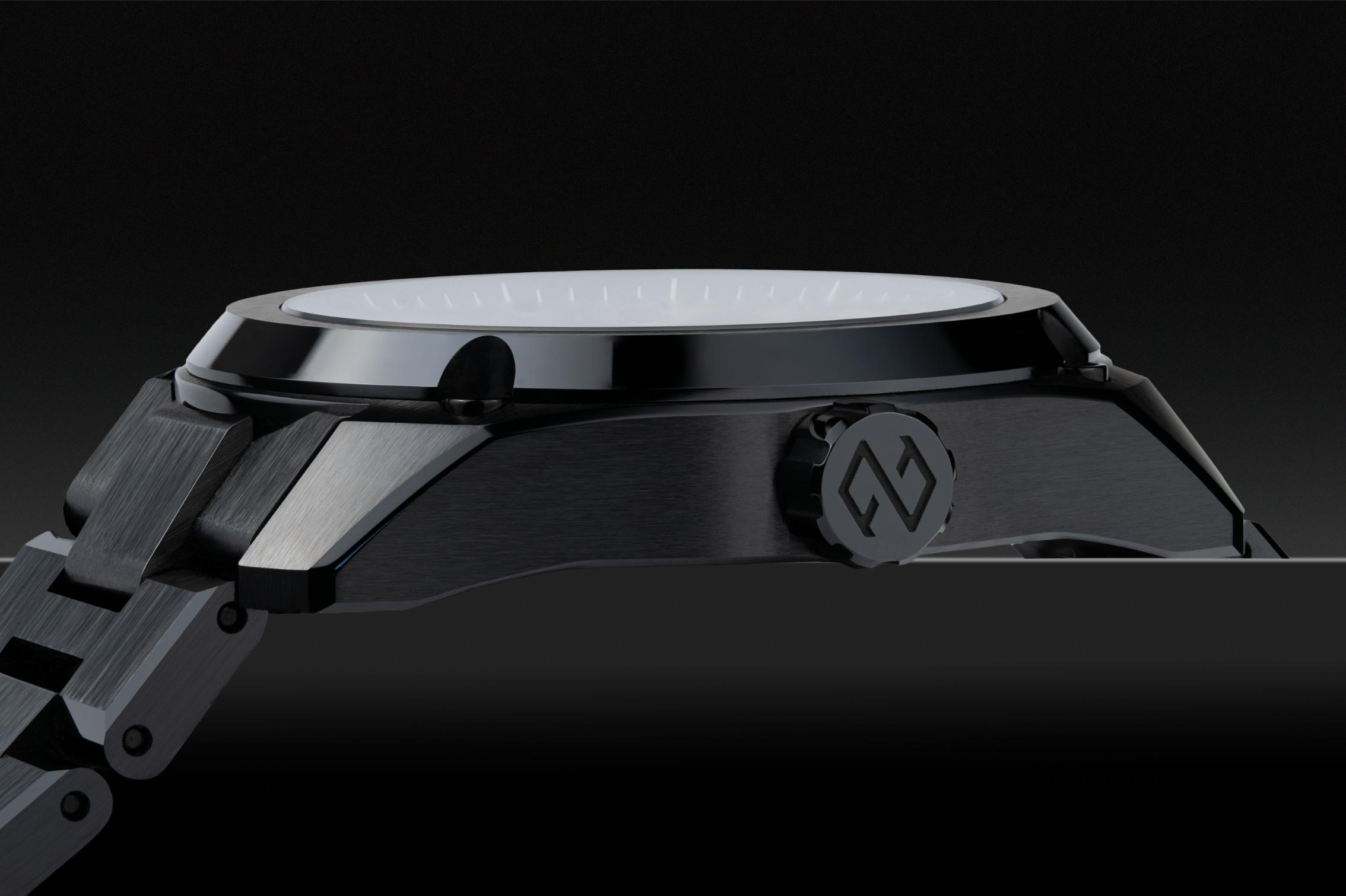 Ale to nie wszystko. Aby osiągnąć efekt „ciemnej materii”, projektanci Formexu opracowali specjalny proces galwaniczny, który sprawił, że tarcza przybrała głęboko czarny odcień, nie tracąc przy tym swojego unikalnego wzoru. Proces ten nosi nazwę Dark Nickel Plating i powstał po szeroko zakrojonych testach prototypowych w należącej do Formexu manufakturze tarcz Cadranor, zlokalizowanej w szwajcarskiej Jurze.